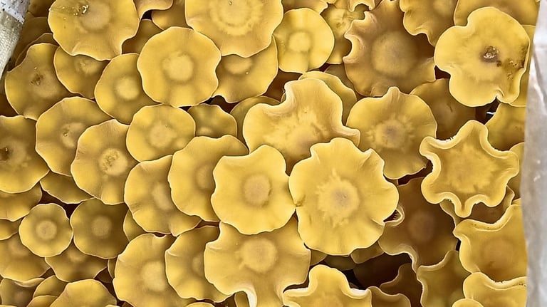 Golden Enoki mushrooms are fantastic in stir-fries and ramen, and their mild, fruity, and peppery flavor makes them perfect raw in salads. With their beautiful colors, they eliminate the need for additional garnishes on your dish. This mushroom grows wild in New Zealand, especially during the colder months. Known for their anti-inflammatory properties, they are also excellent immune system boosters.